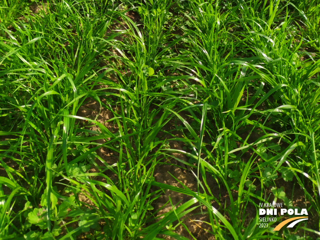 Mieszanka traw ŁĄKOWA od WRONKOWSKI na polu demonstracyjnym w Sielinku. Mieszanka łąkowa na trwałe użytki zielone nadająca się zarówno na nowo zakładane łąki, jak i do renowacji. Gatunki i odmiany dobrane w taki sposób, aby nawet na siedliskach o dużej zmienności uzyskać trwałą, zwartą i dobrze plonującą ruń łąkową. Zawiera także rośliny motylkowe.