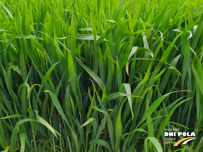 Pszenica ozima AMBICJA od Hodowli Roślin STRZELCE na polu demonstracyjnym w Sielinku. Ambicja to odmiana pszenicy ozimej przystosowana do naszych warunków glebowo klimatycznych, którą z powodzeniem można uprawiać na terenie całego kraju. W wyniku pracy hodowlanej uzyskano odmianę o bardzo wysokim potencjale plonowania oraz ponadprzeciętnych parametrach jakościowych ziarna. Polecana dla gospodarstw wysokotowarowych ukierunkowanych na produkcję pszenicy jakościowej. Zalecana jest do wysiewu w terminach od wczesnego do lekko opóźnionego, krzewi się na dobrym poziomie. Wiosną staruje w średnim terminie i tworzy zwarty wyrównany łan. Rośliny raczej niższe, o bardzo dobrej odporności na wyleganie. Kłos luźniejszy, o średniej skłonności do porastania, kłosi się i dojrzewa w terminie nieco późniejszym, dzięki czemu nie ma problemów z utrzymaniem liczby opadania. Ziarno dorodne o bardzo wysokiej MTZ oraz bardzo wysokiej gęstości. Z parametrów wypiekowych na uwagę zasługuje z pewnością wysoki wskaźnik sedymentacji oraz bardzo dobra wydajność mąki.